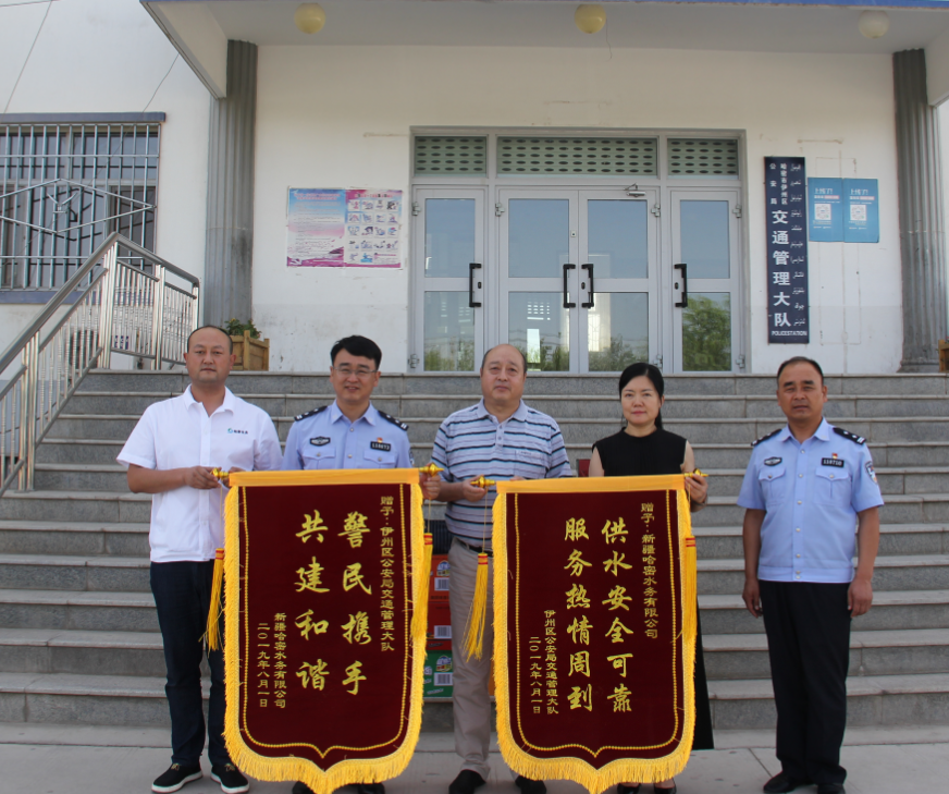 同時,伊州區(qū)公安局交通管理大隊向公司送上“供水安全可靠 服務(wù)熱情周到”的錦旗,表達對公司多年來優(yōu)質(zhì)供水服務(wù)的謝意。他們表示,水務(wù)公司對交警的慰問,既彰顯了警民魚水情深,更是對他們工作的肯定和鼓勵,今后會扎實工作,履職盡責。