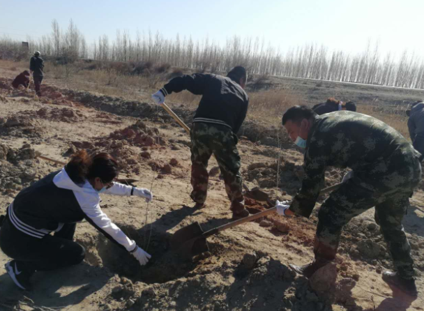在植樹現(xiàn)場,阿勒泰供水公司黨支部書記韓旭東帶領(lǐng)大家干勁十足,填肥、扶苗、培土踩實、平整、澆水,配合默契。此次活動共植樹170余棵。
