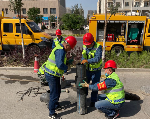 “叮鈴——”庫爾勒銀泉供水有限公司應(yīng)急搶修中心辦公室的電話如常響起,接線員王艷接起電話:“你好,這里是銀泉供水應(yīng)急搶修中心,請講。”電話另一端傳來了用戶反映爆管跑水的險情,王艷立即報告副主任熊軍:“報告,香梨大道博雅家園對面供水管道爆管,水管井內(nèi)有大量積水。”“立即啟動應(yīng)急搶修預(yù)案,全力救險!”2020年6月18日上午10:30,隨著應(yīng)急搶險中心副主任熊軍的一聲令下,庫爾勒銀泉供水有限公司管網(wǎng)爆管應(yīng)急演練拉開了序幕。