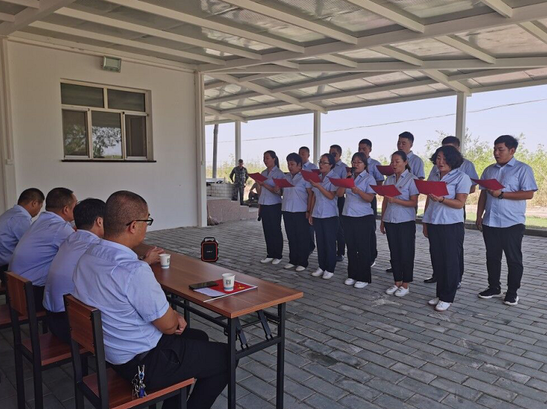 伴隨著激昂的國(guó)歌旋律,鮮艷的五星紅旗也隨風(fēng)飄揚(yáng),升旗儀式在莊嚴(yán)肅穆的氛圍中有序進(jìn)行,隨后公司黨支部書(shū)記帶領(lǐng)全體黨員面向黨旗,高舉右臂,莊嚴(yán)宣誓,一句句鏗鏘有力的入黨誓詞是大家不忘的初心,回音在耳邊縈繞,在心中激蕩。