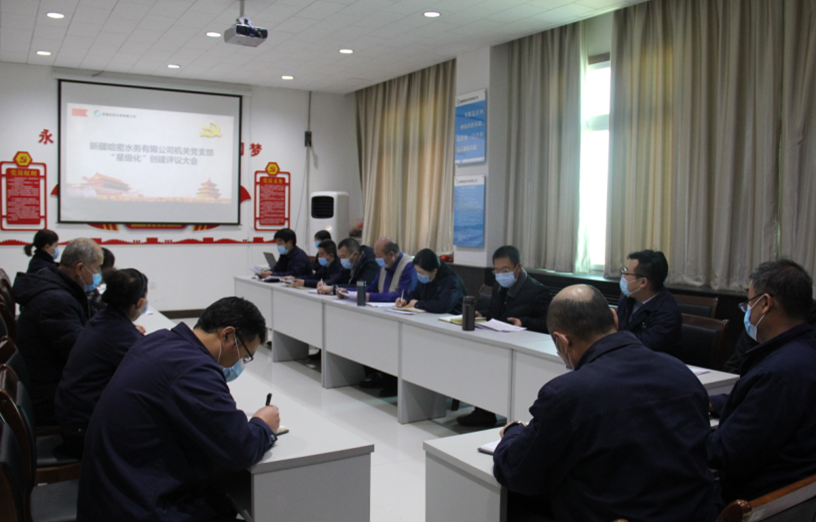 近日,新疆哈密水務有限公司機關黨支部在公司黨員活動室召開“星級化創(chuàng)建”評議黨員大會,哈密市伊州區(qū)住建局機關黨委委員、“四互”小組成員應邀參會,入黨積極分子及部分員工列席會議。